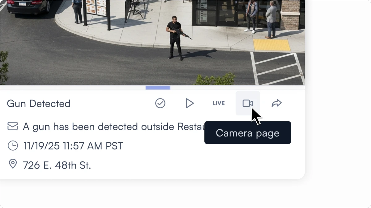 A new shortcut inside alerts takes you straight to the camera’s page for live view, playback, health, and analytics.