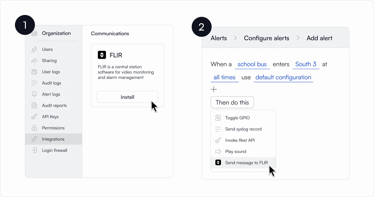 To enable the integration, go to Organization Settings → Integrations → VMS and connect FLIR.